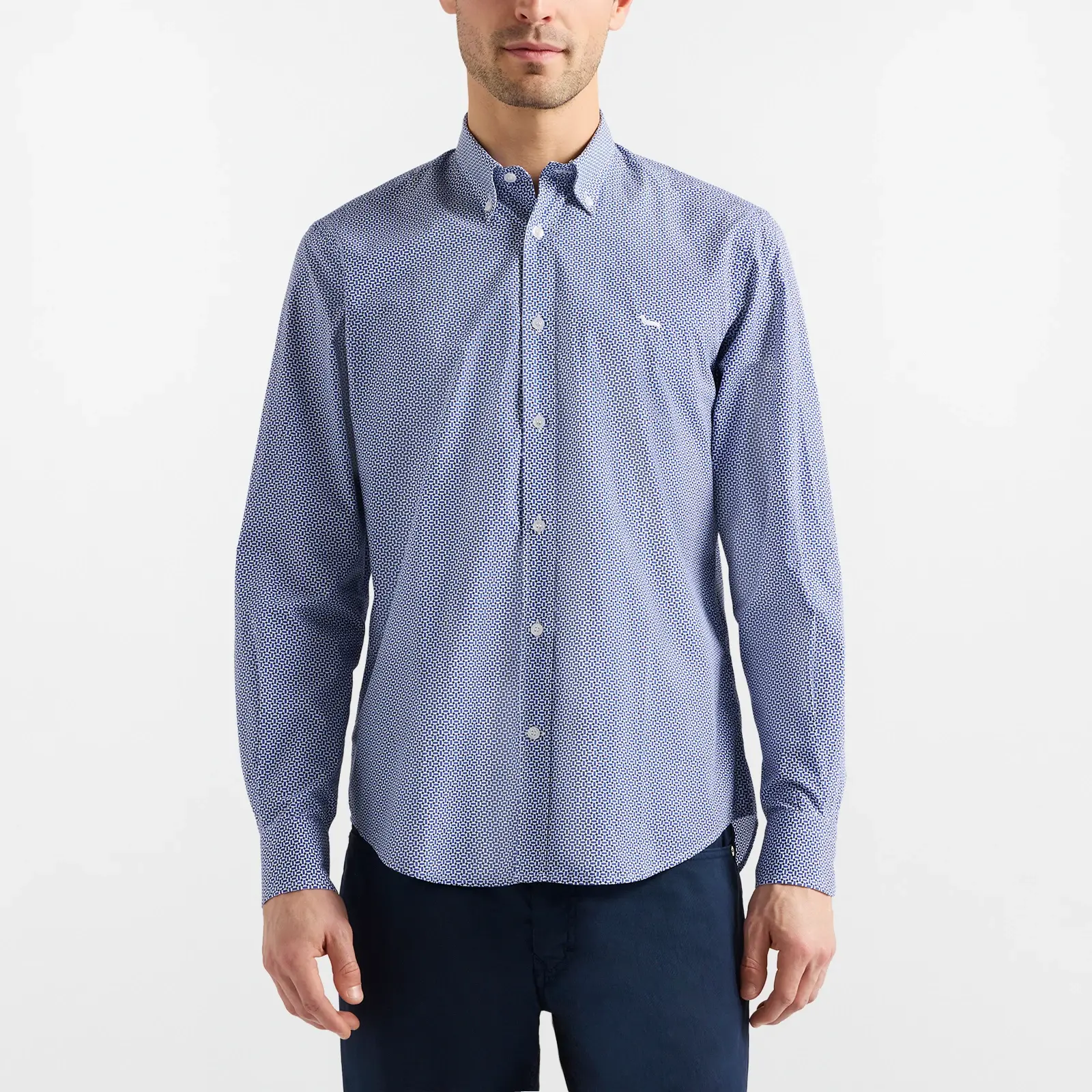 Camicia Micro Stampa Regular Fit Blu Navy