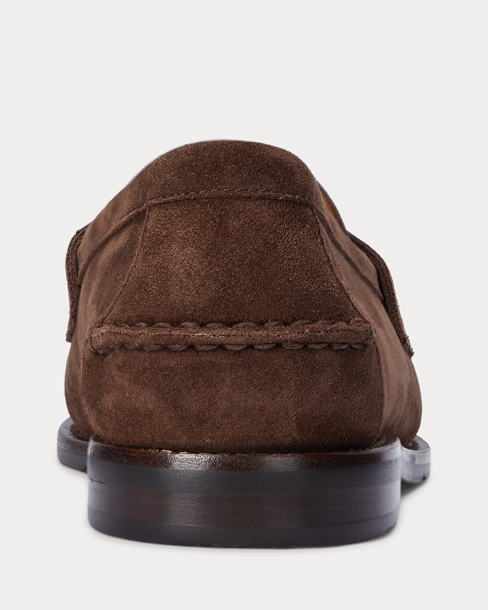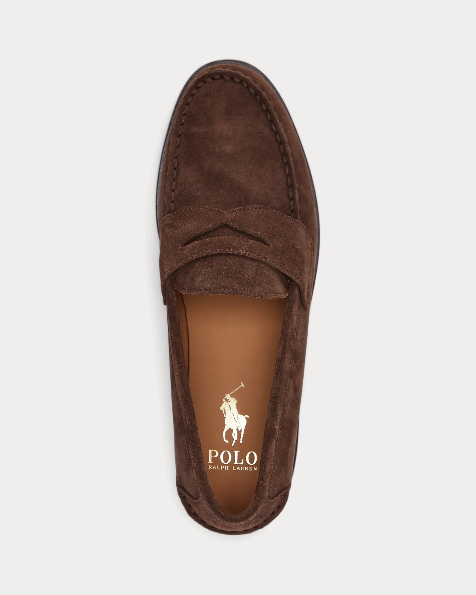Mocassino uomo penny loafer in camoscio, elegante e versatile, con suola in gomma e comfort superiore firmato Polo Ralph Lauren.